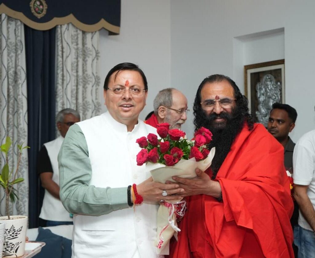 मुख्यमंत्री आवास में आध्यात्मिक संगम में आचार्य महामंडलेश्वर कैलाशानंद गिरी जी महाराज, जूनापीठाधीश्वर आचार्य महामंडलेश्वर स्वामी अवधेशानंद गिरि जी,परमार्थ निकेतन, ऋषिकेश के अध्यक्ष पूज्य स्वामी चिदानंद सरस्वती जी, अखाड़ा परिषद अध्यक्ष स्वामी रविंद्रपुरी महाराज, बागेश्वर धाम पीठाधीश्वर पं. धीरेंद्र कृष्ण शास्त्री, पतंजलि योगपीठ के आचार्य बालकृष्ण, प्रसिद्ध आध्यात्मिक वक्ता जया किशोरी, चिंतक और लेखक डॉ. कुमार विश्वास सहित अनेकों प्रतिष्ठित संत-महात्मा एवं धर्माचार्य भेंट करने वाले प्रमुख संत-महात्माओं में शामिल रहे।